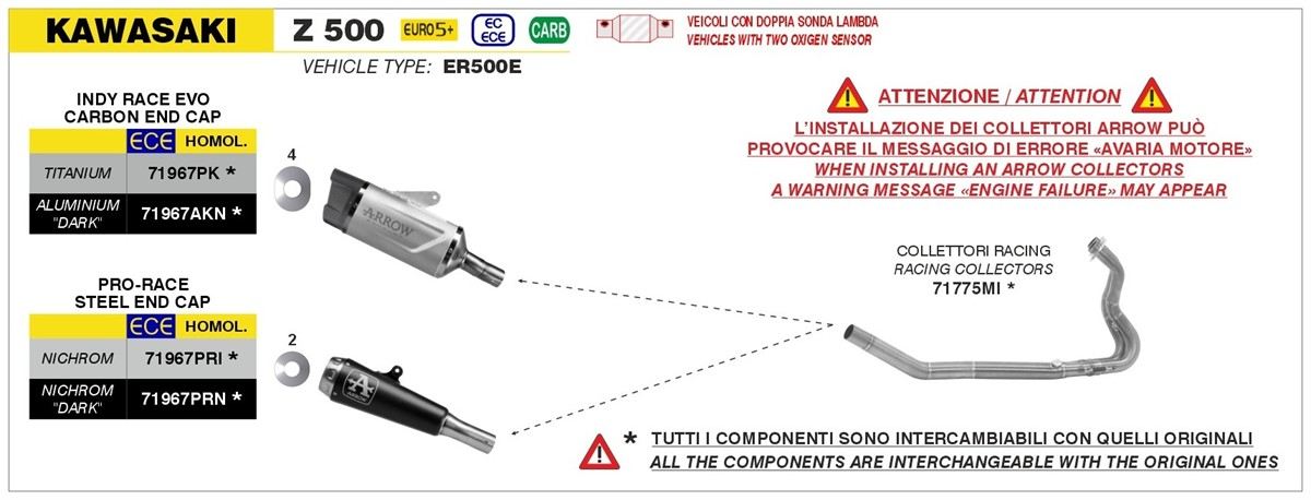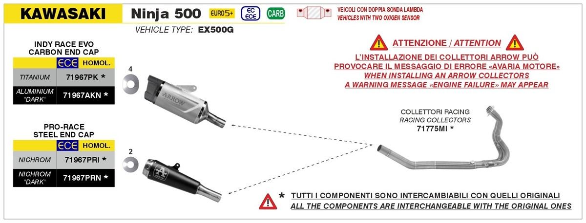 Spedizione GRATIS in ItaliaTerminale di scarico Arrow Indy Race EVO titanio con fondello carby omologato per Kawasaki Ninja 500 2024