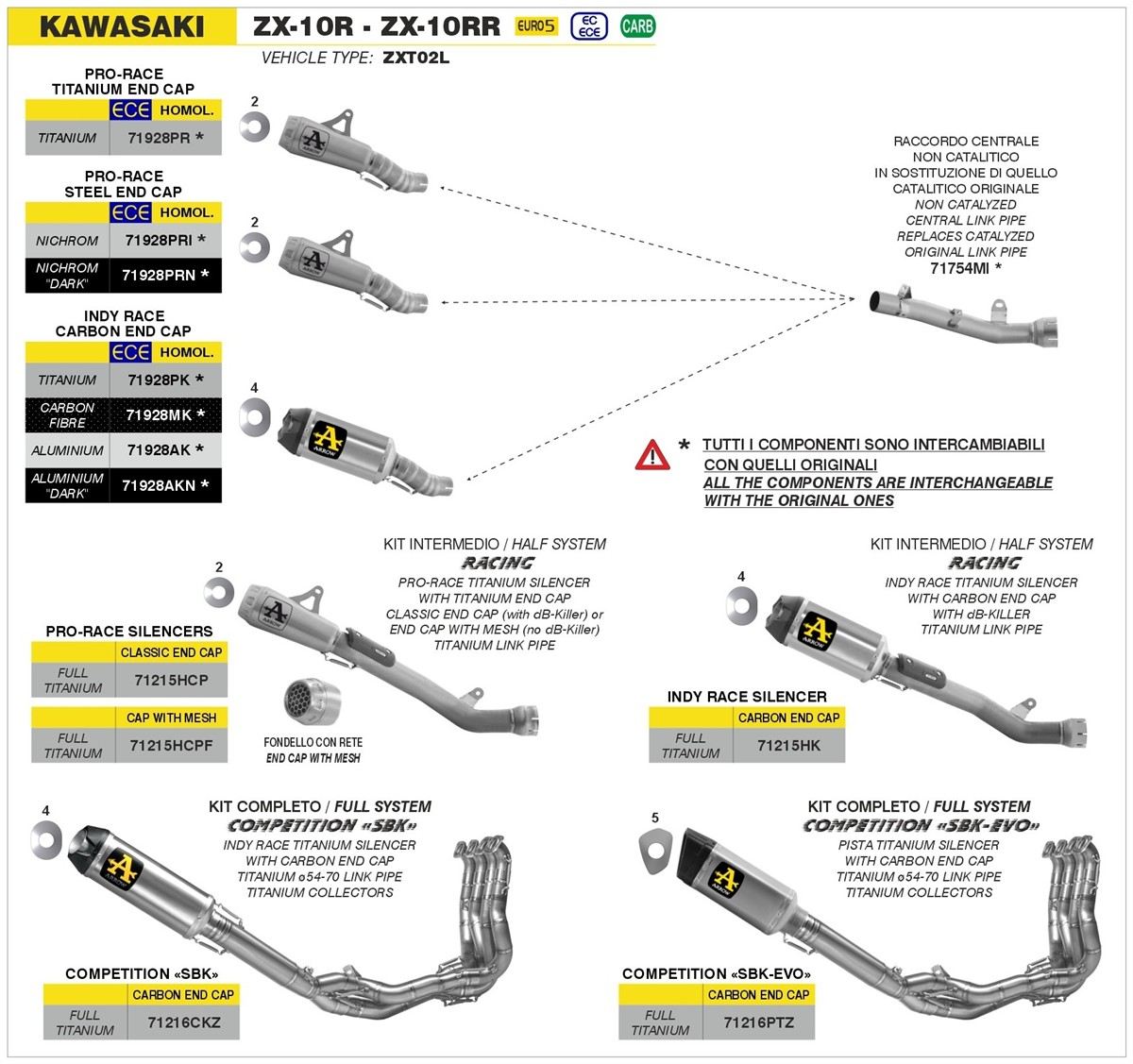 Spedizione GRATIS in ItaliaTerminale di scarico Arrow Indy Race carbonio con fondello carby con raccordo in titanio omologato per Kawasaki ZX-10R 21-24