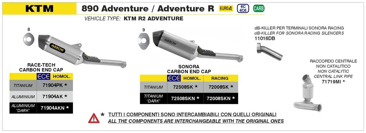 Spedizione GRATIS in ItaliaTerminale di scarico Arrow Sonora titanio con fondello carby omologato per KTM 890 Adventure R 21-24