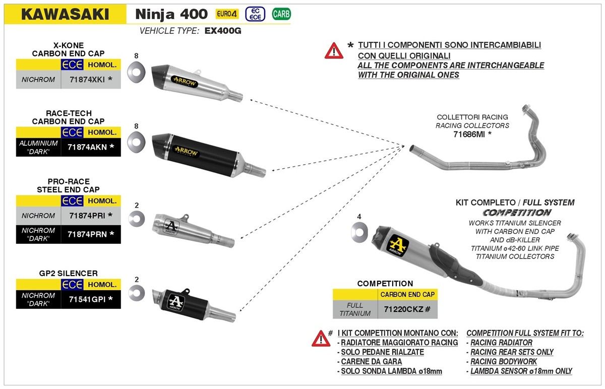Spedizione GRATIS in ItaliaTerminale di scarico Arrow Pro-Race nichrom omologato per Kawasaki Z 400 19-20 | 2023
