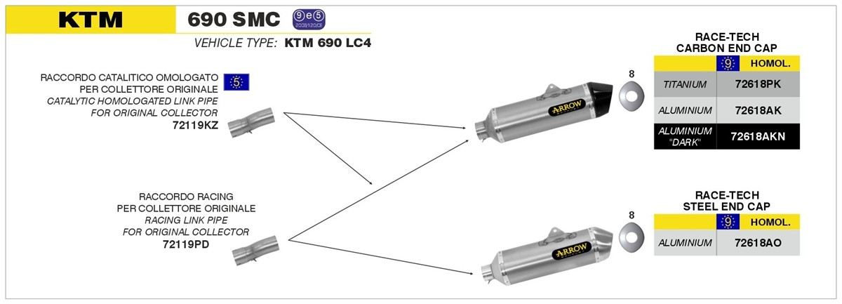 Spedizione GRATIS in ItaliaTerminale di scarico Arrow Race-Tech Alluminio omologato per KTM 690 SMC 09-16