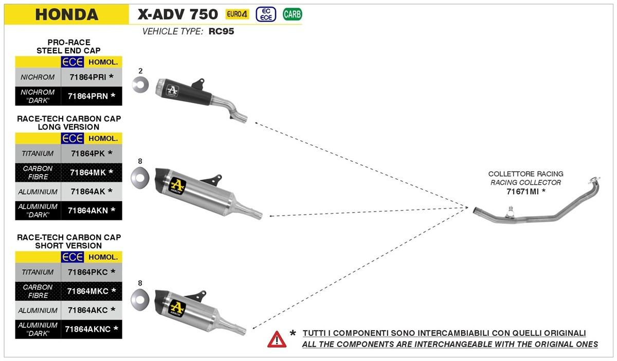 Spedizione GRATIS in ItaliaTerminale di scarico Arrow Race-Tech Alluminio con fondello carby - versione corta omologato per Honda X-ADV 750 17-24