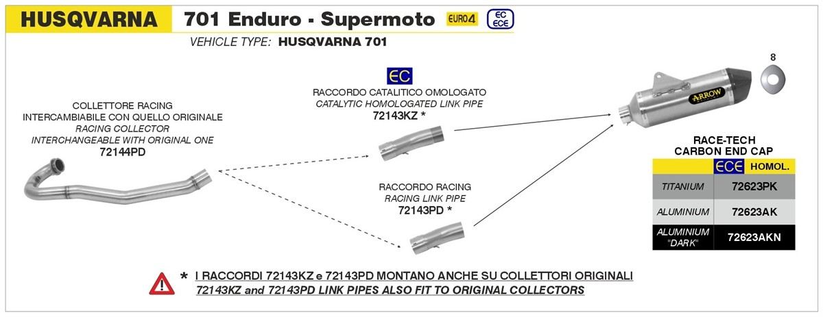 Spedizione GRATIS in ItaliaTerminale di scarico Arrow Race-Tech alluminio Dark con fondello carby omologato per Husqvarna 701 Supermotard 17-24
