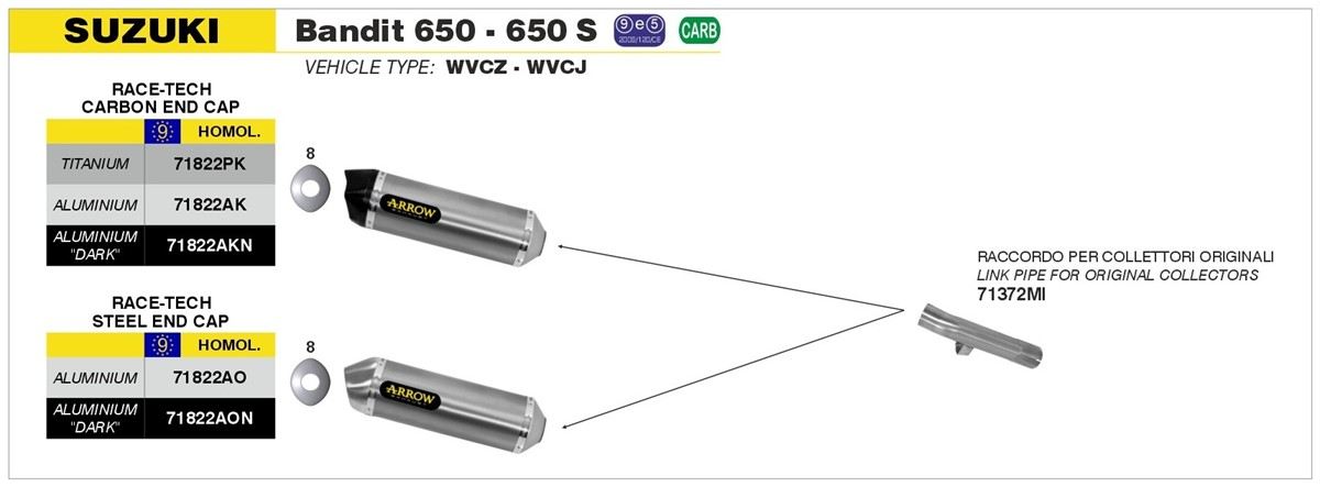 Spedizione GRATIS in ItaliaTerminale di scarico Arrow Race-Tech Alluminio omologato per Suzuki Bandit 650 07-13