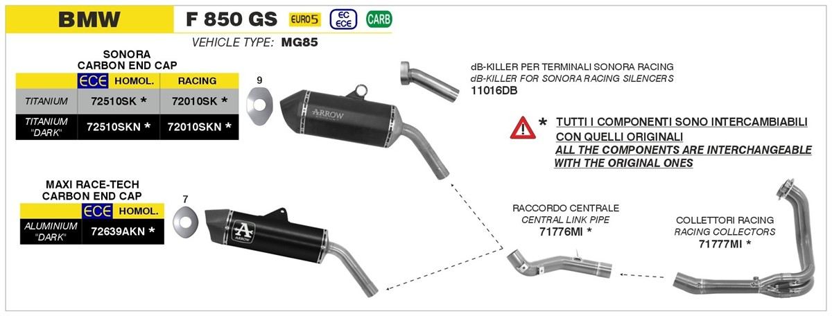 Spedizione GRATIS in ItaliaTerminale di scarico Arrow Sonora titanio con fondello carby omologato per BMW F 850 GS 21-24
