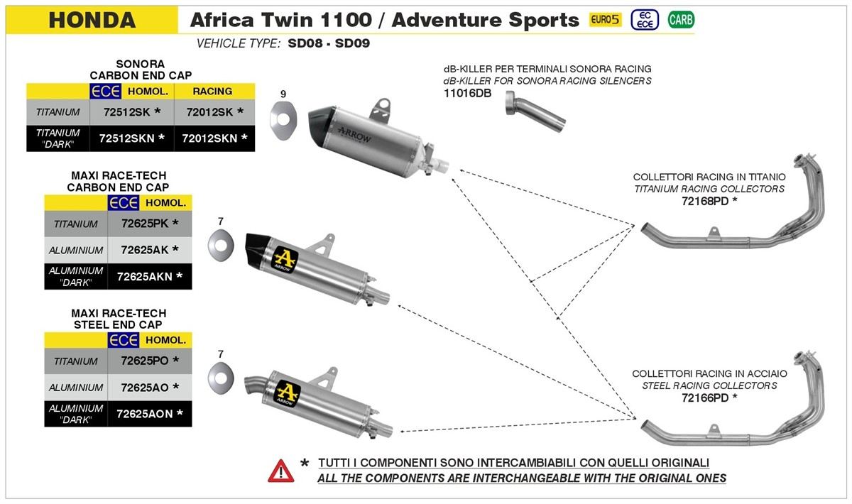 Spedizione GRATIS in ItaliaTerminale di scarico Arrow Sonora titanio con fondello carby omologato per Honda Africa Twin CRF 1100 L 20-25