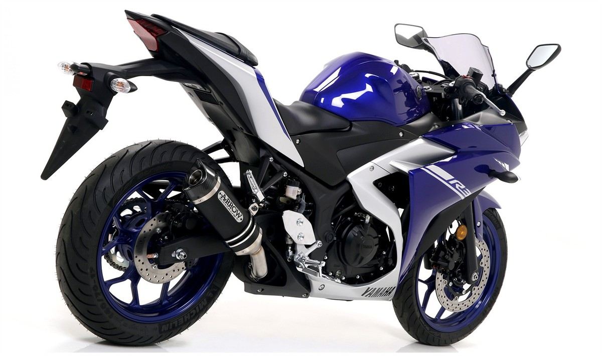 Terminale di scarico Arrow Street Thunder Carbonio con fondello carby omologato per Yamaha R3 15-18 | 21-24