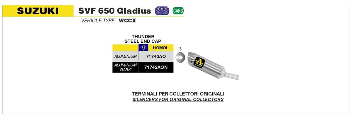 Terminale di scarico Arrow Street Thunder aluminium Dark per collettori originali omologato per Suzuki Gladius 650 09-15