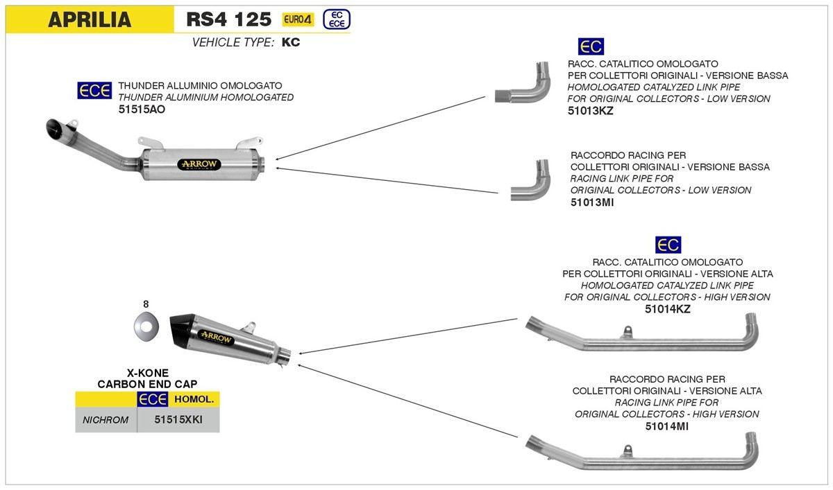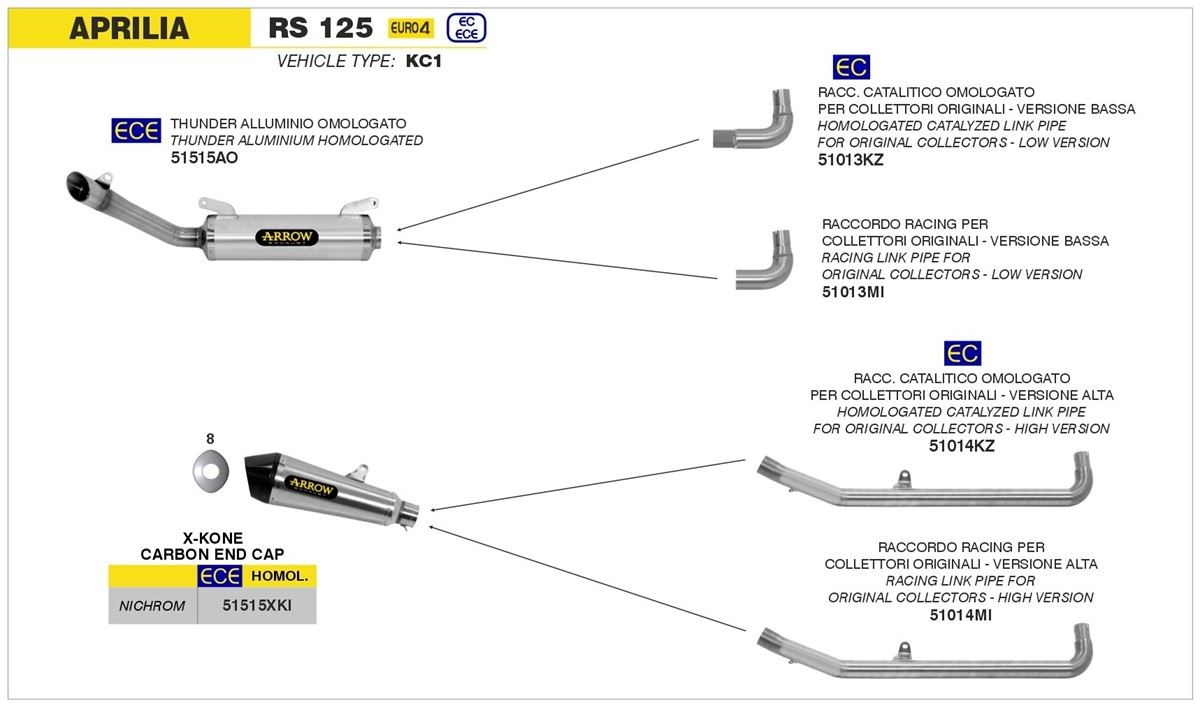 Terminale di scarico Arrow X-Kone omologato per Aprilia RS 125 4T ABS 18-20