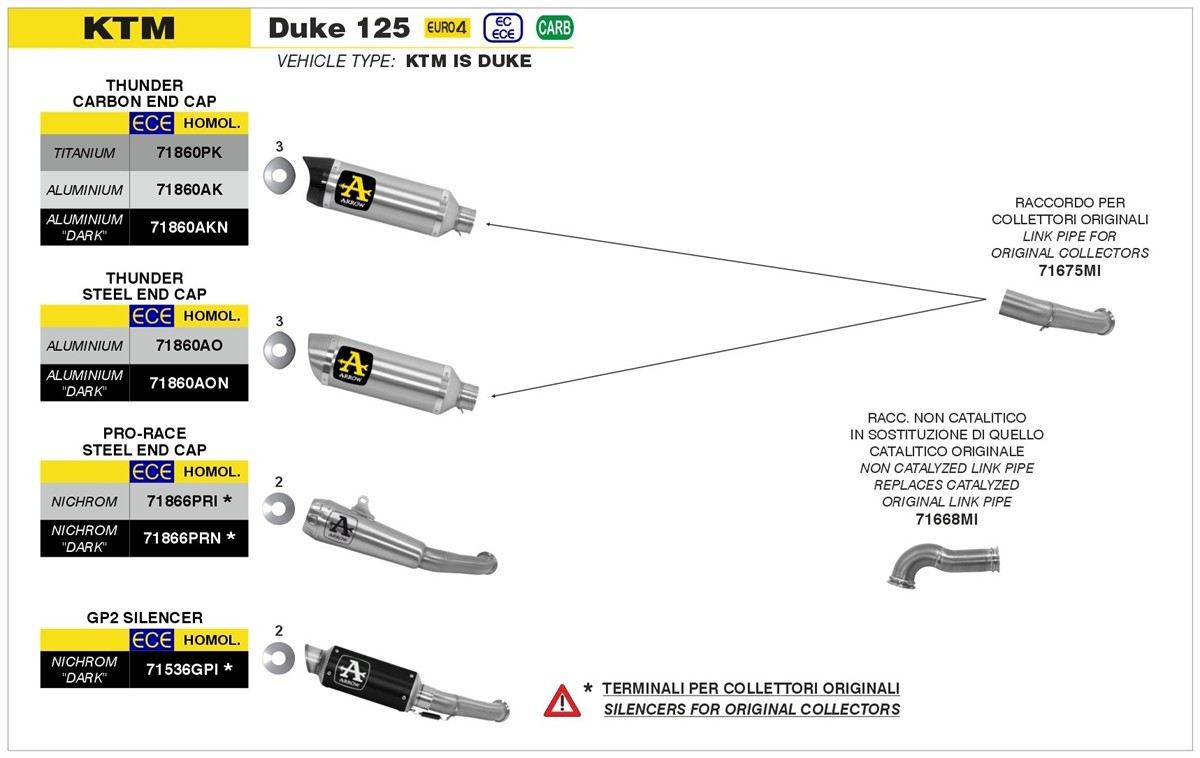 Spedizione GRATIS in ItaliaTerminale di scarico Arrow Thunder alluminio Dark con fondello carby omologato per KTM 125 Duke 17-20
