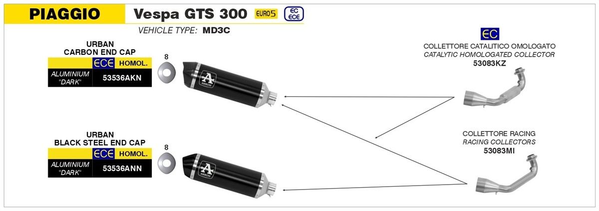 Spedizione GRATIS in ItaliaTerminale di scarico Termignoni non omologato in acciaio inox nero per Piaggio Vespa GTS 300 08-22