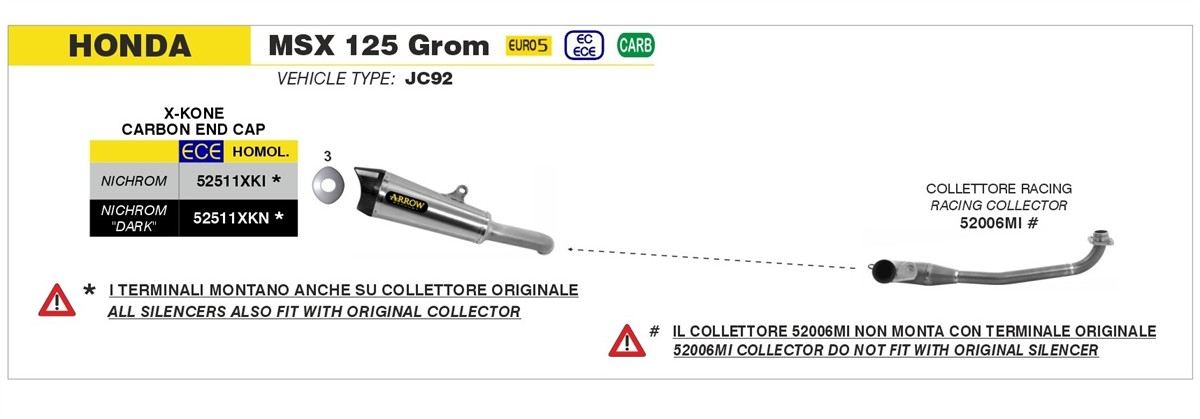 Terminale di scarico Arrow X-Kone omologato per Honda MSX 125 GROM 21-24