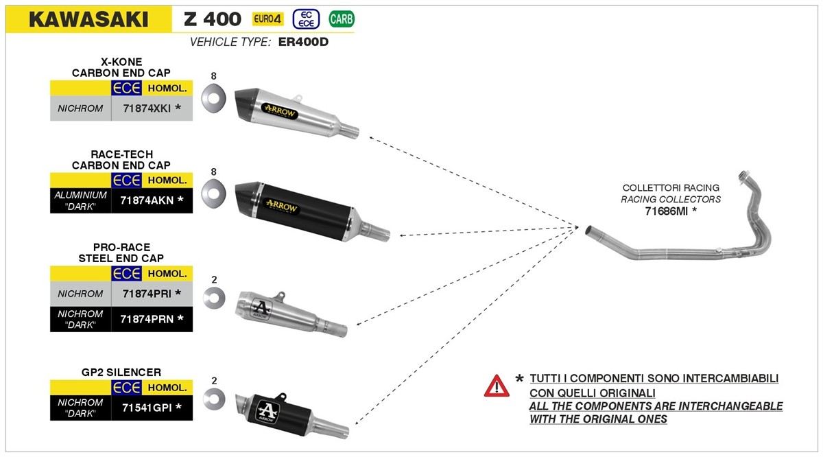 Spedizione GRATIS in ItaliaTerminale di scarico Arrow Pro-Race nichrom omologato per Kawasaki Z 400 19-20 | 2023