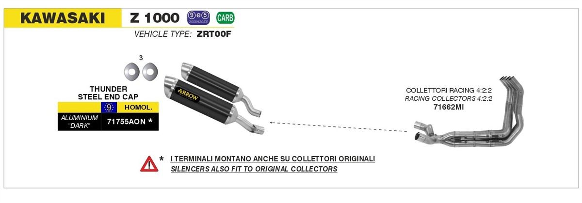 Spedizione GRATIS in ItaliaTerminali di scarico Arrow Pro-Race nichrom Dark (Dx+Sx) omologato per Kawasaki Z 1000 17-20